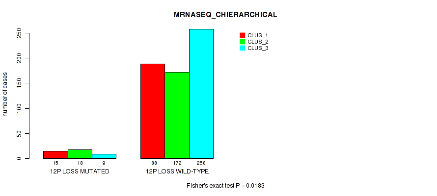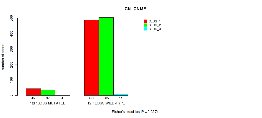 12p loss cnv correlated to 'CN_CNMF', 'METHLYATION_CNMF', and 'MRNASEQ_CHIERARCHICAL'.