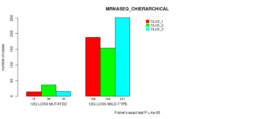 12q loss cnv correlated to 'CN_CNMF', 'METHLYATION_CNMF', 'MRNASEQ_CHIERARCHICAL', and 'MIRSEQ_CNMF'.