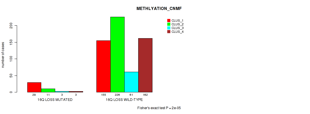 16p loss cnv correlated to 'CN_CNMF', 'METHLYATION_CNMF', 'MRNASEQ_CNMF', and 'MRNASEQ_CHIERARCHICAL'.