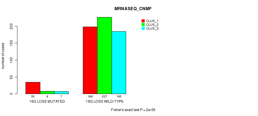 16q gain cnv correlated to 'MRNA_CNMF' and 'MRNA_CHIERARCHICAL'.