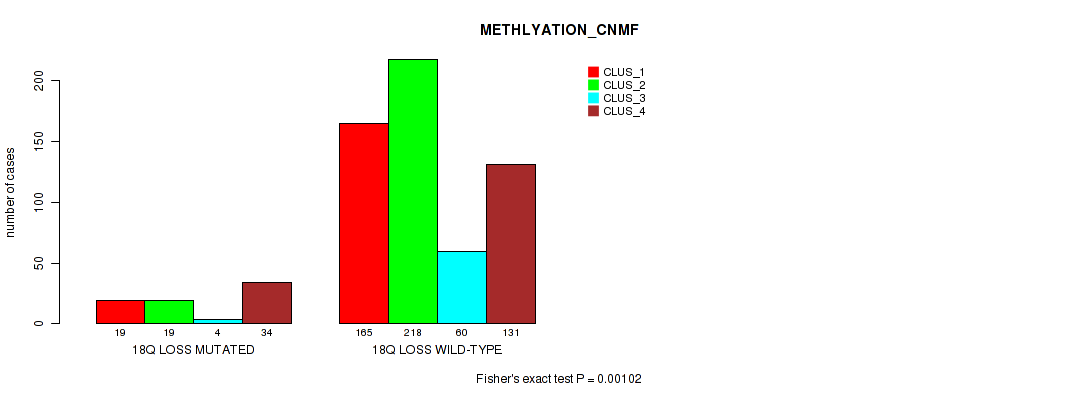 18q loss cnv correlated to 'MRNA_CHIERARCHICAL' and 'METHLYATION_CNMF'.