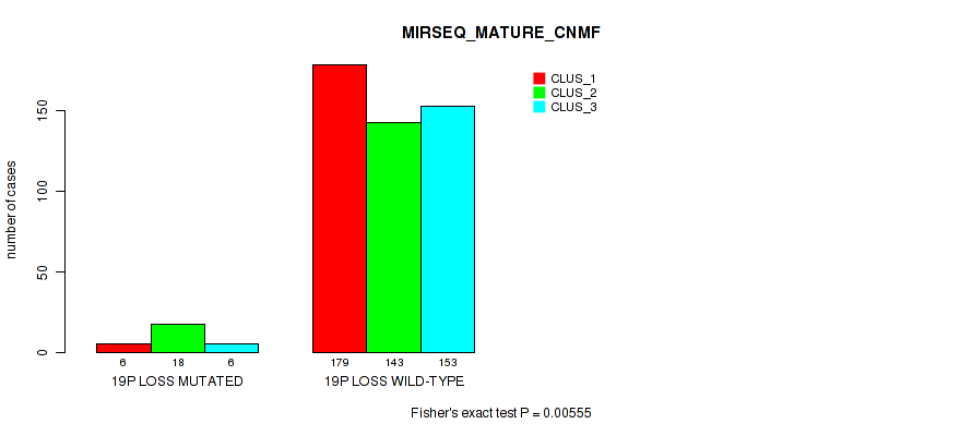 19p loss cnv correlated to 'MRNA_CNMF', 'MRNA_CHIERARCHICAL', 'CN_CNMF', and 'MIRSEQ_MATURE_CNMF'.