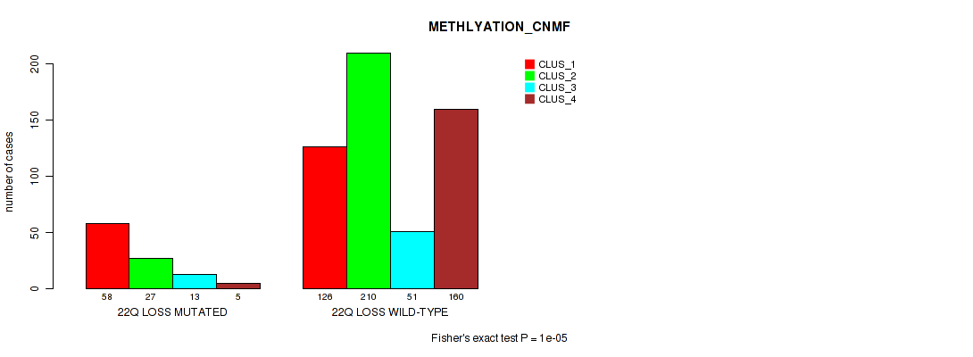 Figure S478. Get High-res Image Gene #80: '22q loss' versus Molecular Subtype #6: 'METHLYATION_CNMF'