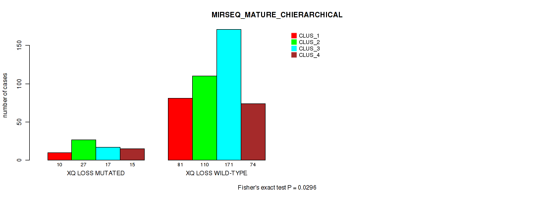 Table S496. Gene #82: 'xq loss' versus Molecular Subtype #12: 'MIRSEQ_MATURE_CHIERARCHICAL'