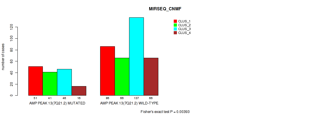 amp_13q34 cnv correlated to 'MIR_CNMF', 'METHLYATION_CNMF', and 'MRNASEQ_CHIERARCHICAL'.
