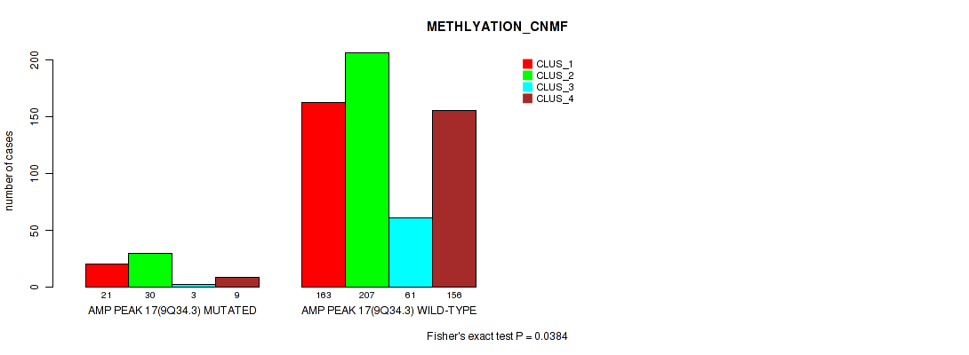 amp_9q34.3 cnv correlated to 'MRNA_CNMF', 'MRNA_CHIERARCHICAL', 'CN_CNMF', 'METHLYATION_CNMF', 'MRNASEQ_CNMF', and 'MRNASEQ_CHIERARCHICAL'.