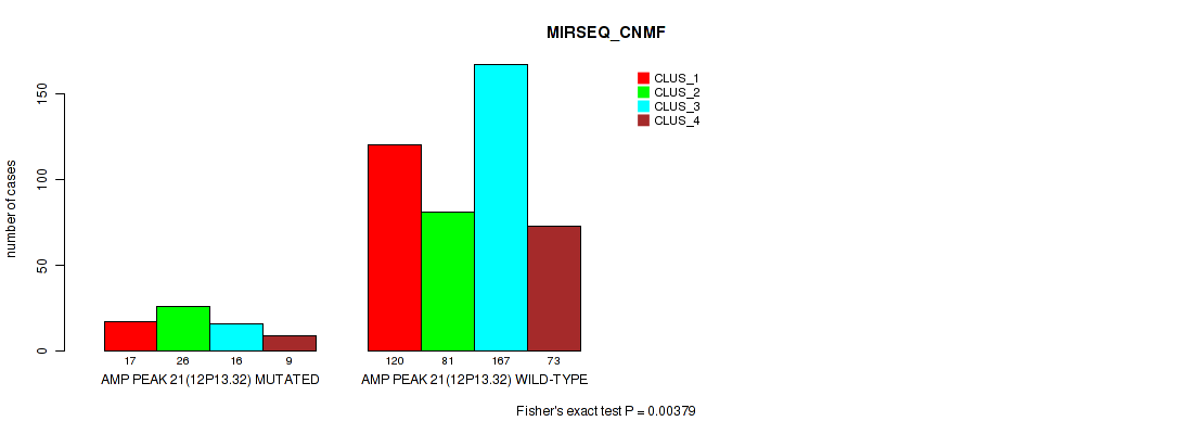 amp_12p13.32 cnv correlated to 'METHLYATION_CNMF', 'MRNASEQ_CNMF', 'MRNASEQ_CHIERARCHICAL', 'MIRSEQ_CNMF', and 'MIRSEQ_CHIERARCHICAL'.