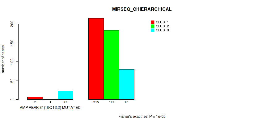 Figure S574. Get High-res Image Gene #76: 'del_19q13.43' versus Molecular Subtype #12: 'MIRSEQ_MATURE_CHIERARCHICAL'