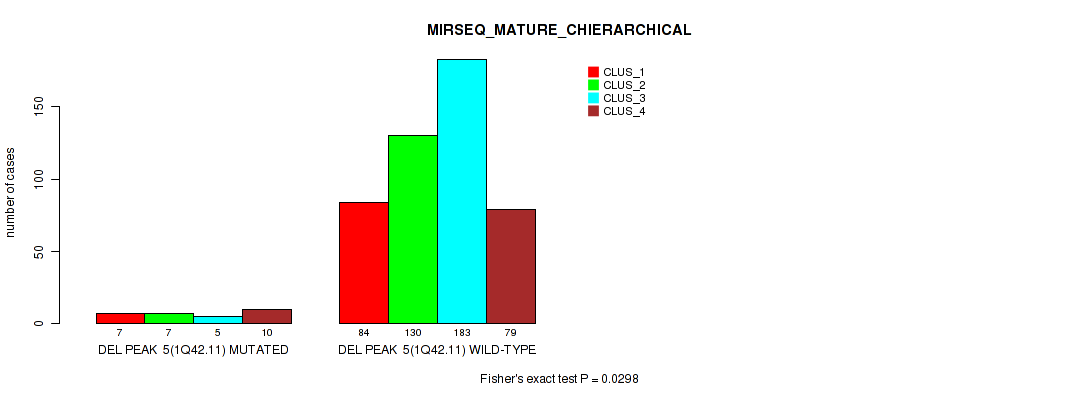 del_1q42.11 cnv correlated to 'CN_CNMF', 'METHLYATION_CNMF', 'MRNASEQ_CHIERARCHICAL', 'MIRSEQ_CNMF', and 'MIRSEQ_MATURE_CHIERARCHICAL'.