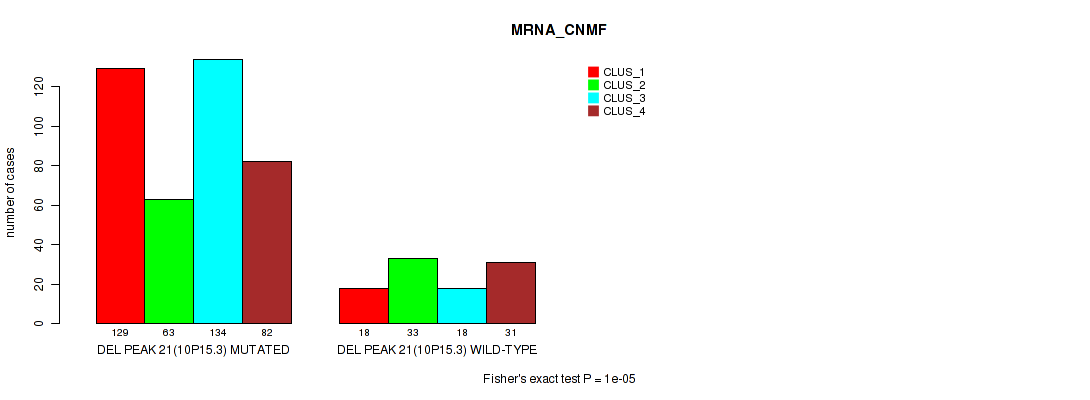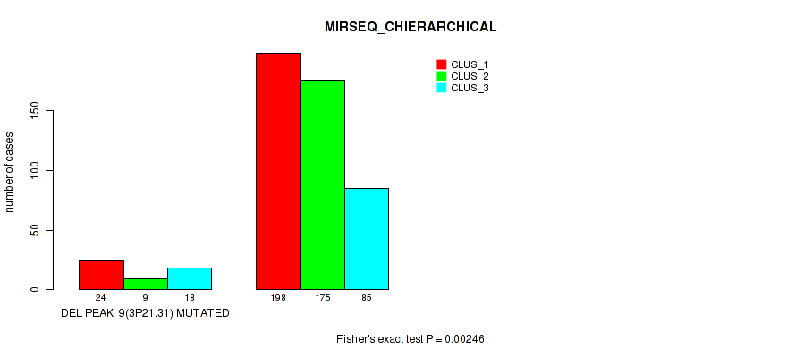 del_9p21.3 cnv correlated to 'MRNA_CNMF', 'MRNA_CHIERARCHICAL', 'MIR_CHIERARCHICAL', 'CN_CNMF', 'METHLYATION_CNMF', 'MRNASEQ_CNMF', 'MRNASEQ_CHIERARCHICAL', 'MIRSEQ_CHIERARCHICAL', 'MIRSEQ_MATURE_CNMF', and 'MIRSEQ_MATURE_CHIERARCHICAL'.