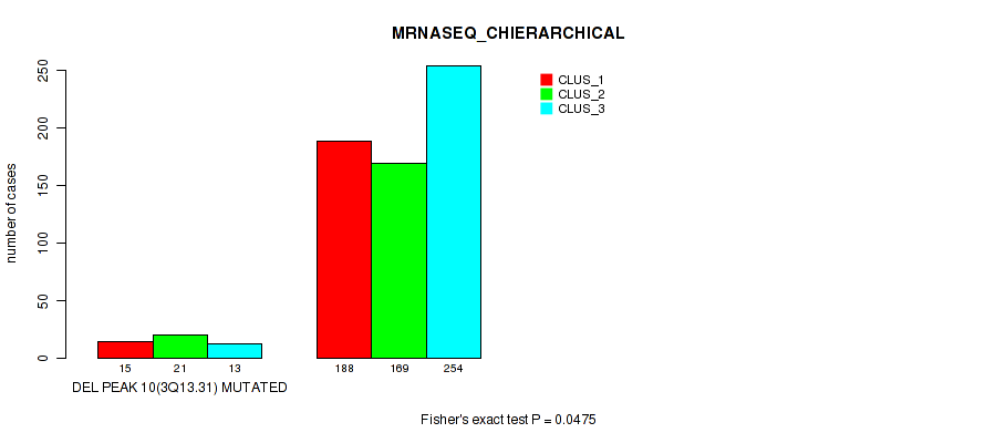 del_3q13.31 cnv correlated to 'METHLYATION_CNMF', 'MRNASEQ_CHIERARCHICAL', and 'MIRSEQ_CHIERARCHICAL'.