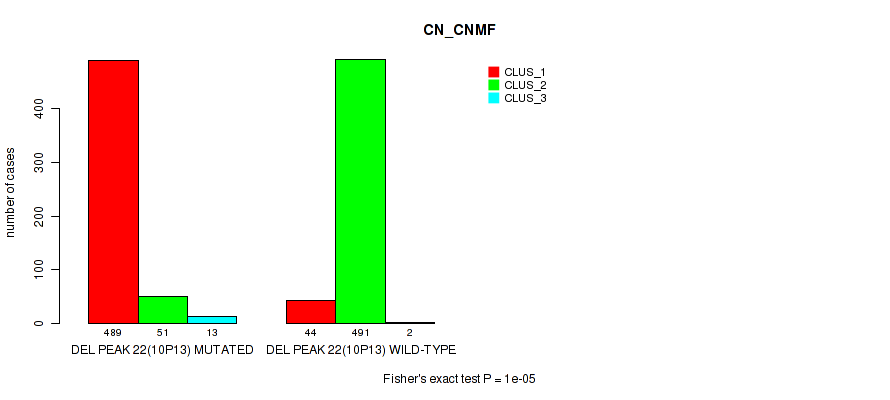 Figure S576. Get High-res Image Gene #77: 'del_22q13.32' versus Molecular Subtype #5: 'CN_CNMF'