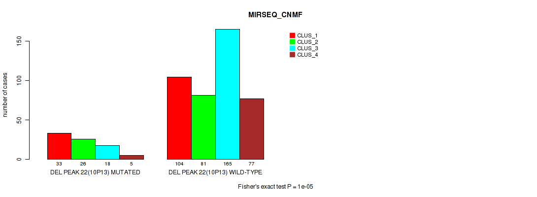 Figure S582. Get High-res Image Gene #77: 'del_22q13.32' versus Molecular Subtype #11: 'MIRSEQ_MATURE_CNMF'