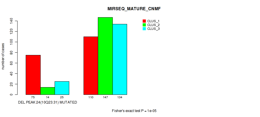 del_10q23.31 cnv correlated to 'MRNA_CNMF', 'MRNA_CHIERARCHICAL', 'MIR_CNMF', 'MIR_CHIERARCHICAL', 'CN_CNMF', 'METHLYATION_CNMF', 'MRNASEQ_CNMF', 'MRNASEQ_CHIERARCHICAL', 'MIRSEQ_CNMF', 'MIRSEQ_CHIERARCHICAL', 'MIRSEQ_MATURE_CNMF', and 'MIRSEQ_MATURE_CHIERARCHICAL'.