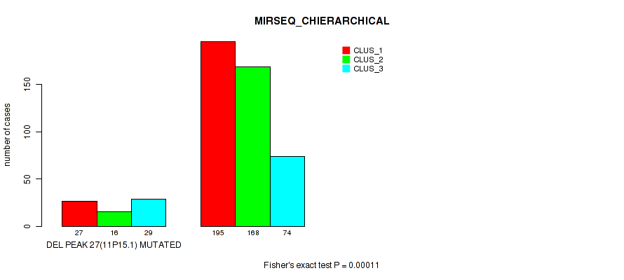 del_11p15.1 cnv correlated to 'MRNA_CNMF', 'MRNA_CHIERARCHICAL', 'CN_CNMF', 'METHLYATION_CNMF', 'MRNASEQ_CNMF', 'MRNASEQ_CHIERARCHICAL', 'MIRSEQ_CNMF', 'MIRSEQ_CHIERARCHICAL', and 'MIRSEQ_MATURE_CHIERARCHICAL'.