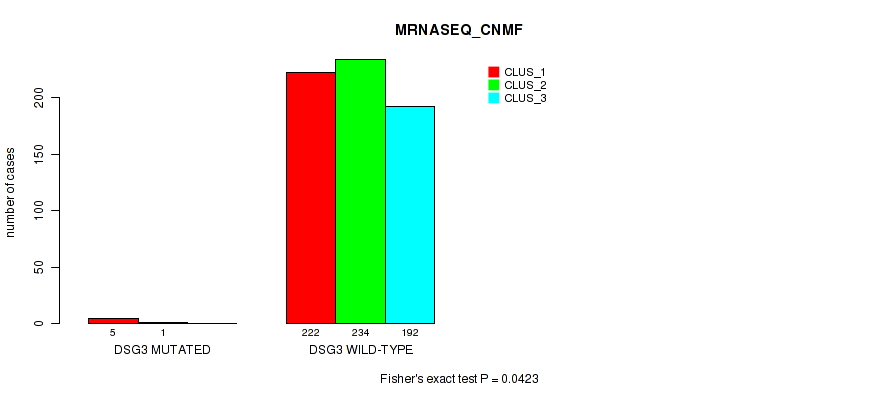 DSG3 mutation correlated to 'CN_CNMF' and 'MRNASEQ_CHIERARCHICAL'.