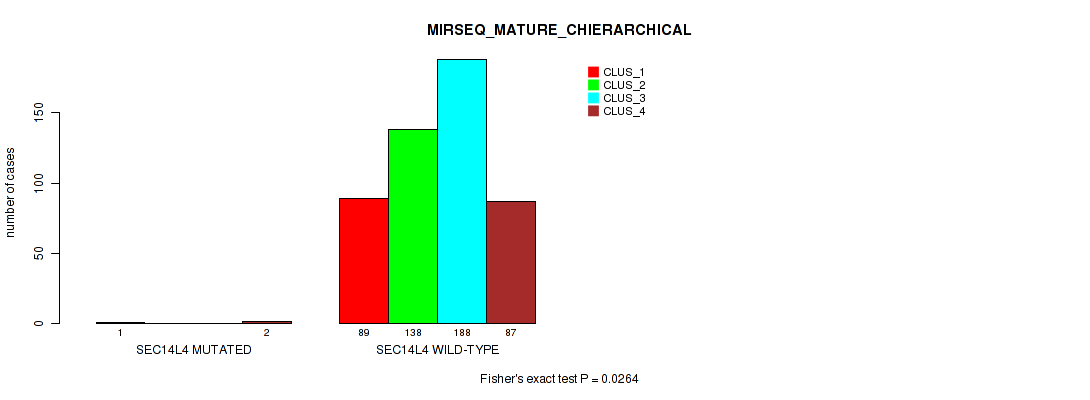 Table S1630. Gene #185: 'SSTR4 MUTATION STATUS' versus Molecular Subtype #10: 'MIRSEQ_CHIERARCHICAL'