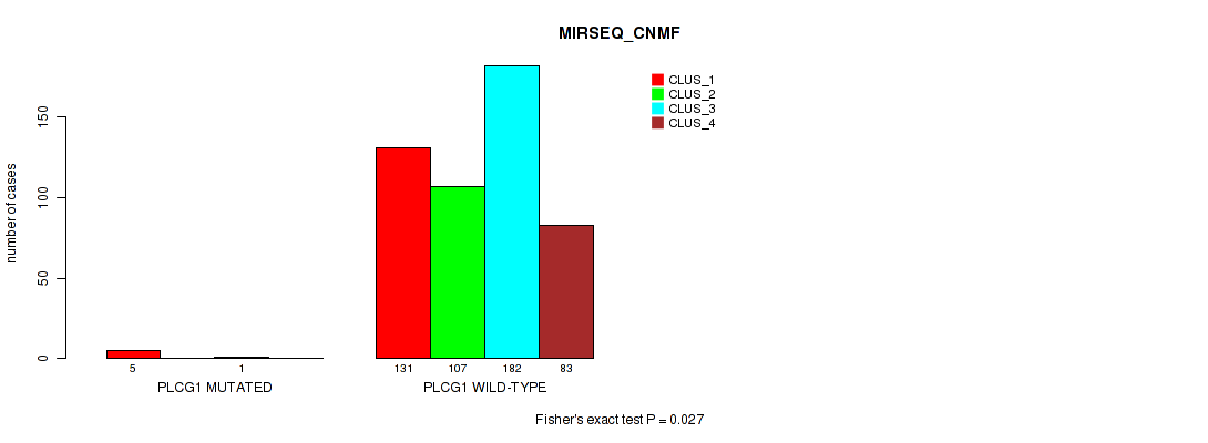 PTPN11 mutation correlated to 'MIR_CNMF', 'MIRSEQ_CHIERARCHICAL', 'MIRSEQ_MATURE_CNMF', and 'MIRSEQ_MATURE_CHIERARCHICAL'.