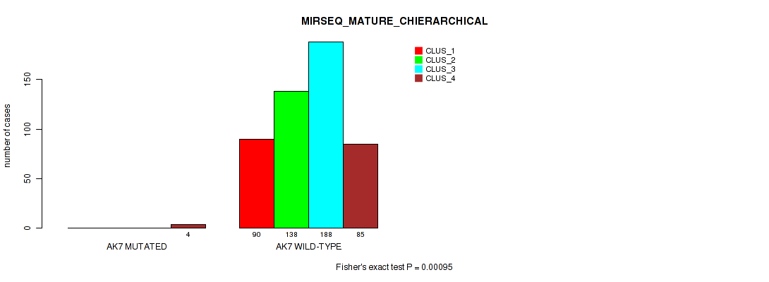 AK7 mutation correlated to 'MIRSEQ_CHIERARCHICAL' and 'MIRSEQ_MATURE_CHIERARCHICAL'.