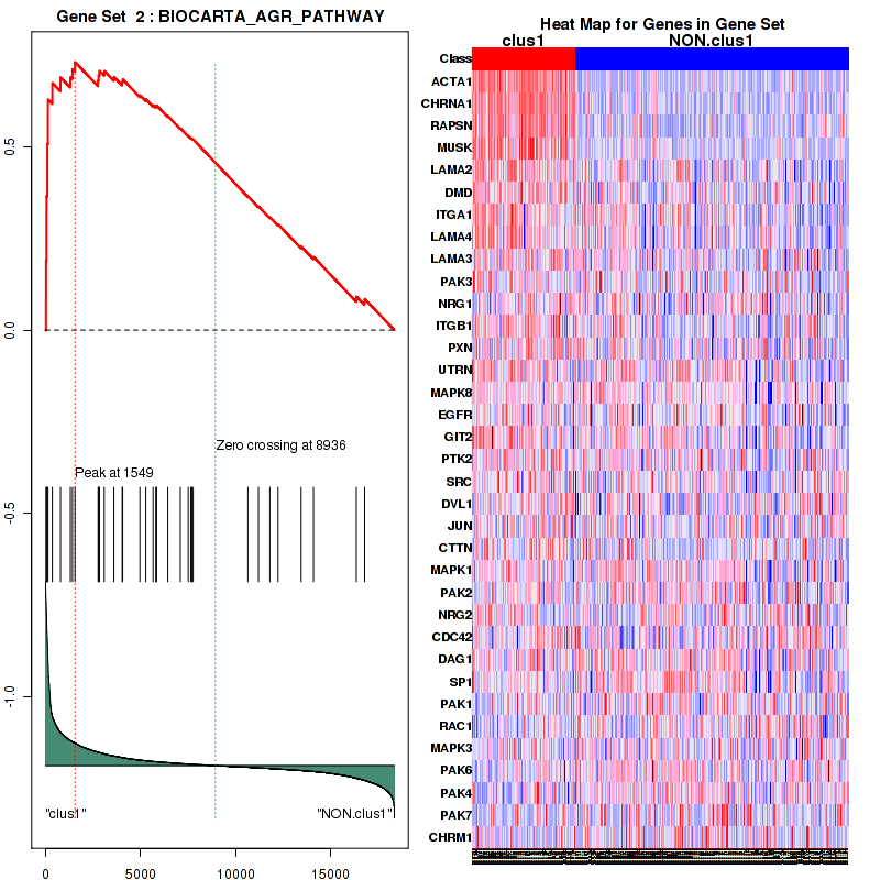 • Top enriched gene sets are BIOCARTA NO1 PATHWAY, BIOCARTA AGR PATHWAY, BIOCARTA ALK PATHWAY, BIOCARTA AT1R PATHWAY, BIOCARTA BIOPEPTIDES PATHWAY, BIOCARTA CARM ER PATHWAY, BIOCARTA HDAC PATHWAY, BIOCARTA EGF PATHWAY, BIOCARTA ERK PATHWAY, BIOCARTA FMLP PATHWAY