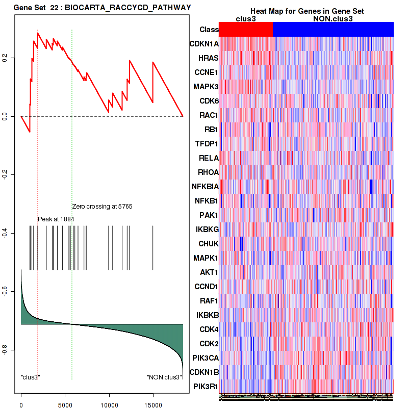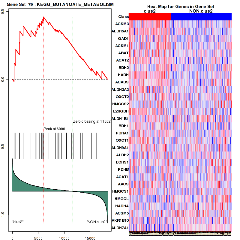 Table S30.  Get Full Table This table shows a Running Enrichment Score (RES) of each gene in this pathway, that is, the enrichment score at this point in the ranked list of genes. All genes are ranked by Signal-to-Noise (S2N), a measure of similarity as default and are used to obtain ES matrix of all genes. In this way, GSEA tool uses expression pattern of not only overlapped genes but also not-overlapped genes to produce ES matrix.