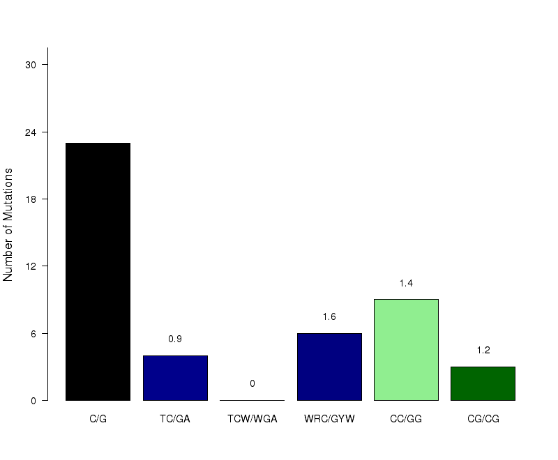 Figure 8.  Get High-res Image The number of mutations categorized into three possible types of substitutions at the tCw motif (complementary mutations included) within C- or G-coordinated clusters. Numbers are calculated using the “Totals” row in the corresponding columns of the “*_sorted_sum_G_C_clusters.txt” file. Mutations caused by cytidine deamination in stretches of ssDNA caused by APOBEC mutagenesis are expected to be predominantly C-->T or C-->G with very few C-->A. Base substitution categories are shown within TCW context.