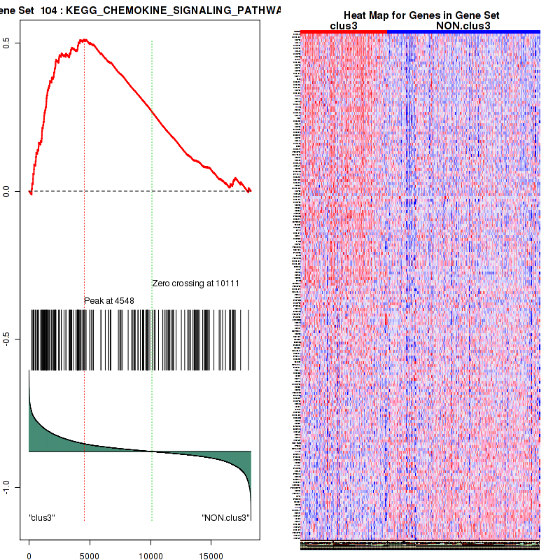 Figure S1. Get High-res Image This plot shows mRNAseq_cNMF expression data heatmap (on the left) a RunningEnrichmentScore(RES) plot (on the top right) and a Signal2Noise(S2N) plot (on the bottom right) of genes in the pathway: BIOCARTA NO1 PATHWAY.