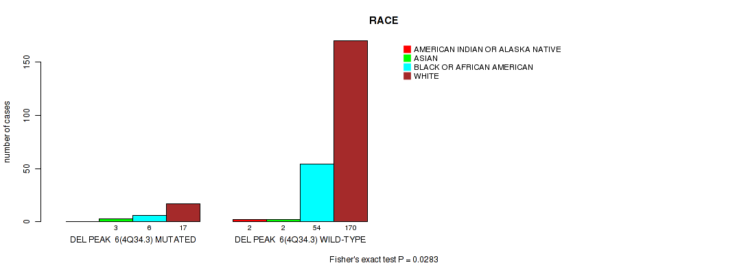 Figure S127. Get High-res Image Gene #31: 'del_xq28' versus Clinical Feature #11: 'RACE'