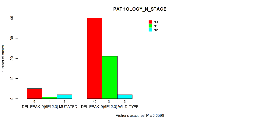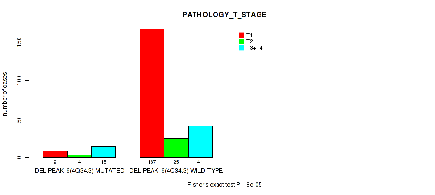 del_6p12.3 cnv correlated to 'NEOPLASM_DISEASESTAGE', 'PATHOLOGY_T_STAGE', and 'PATHOLOGY_N_STAGE'.