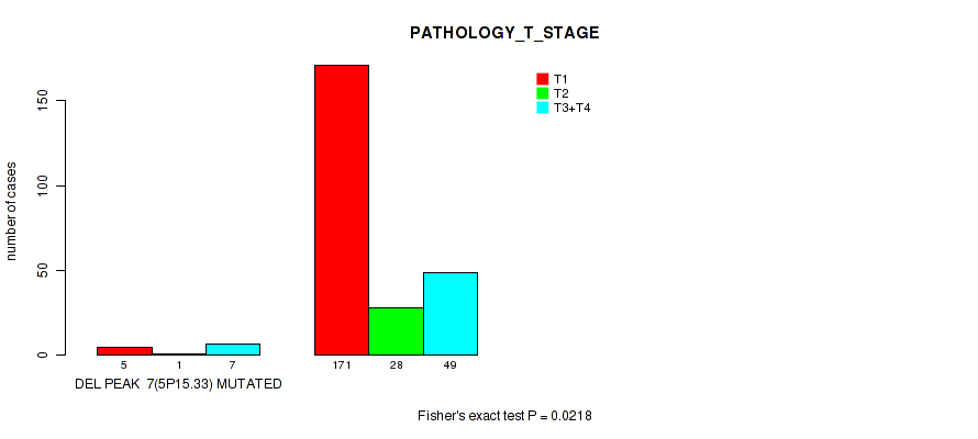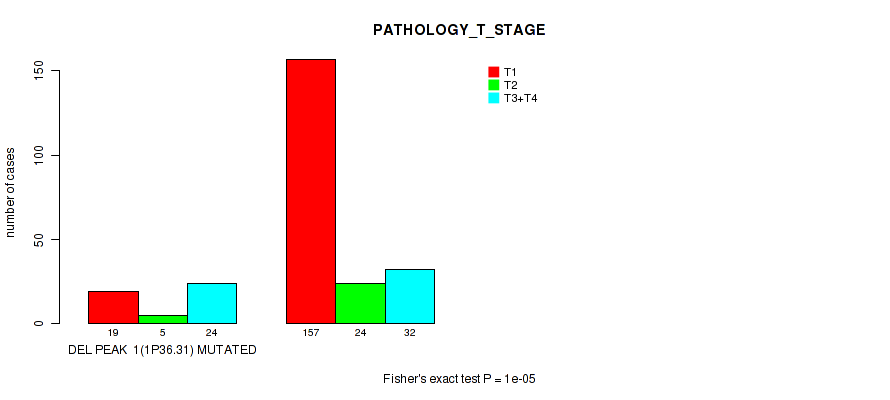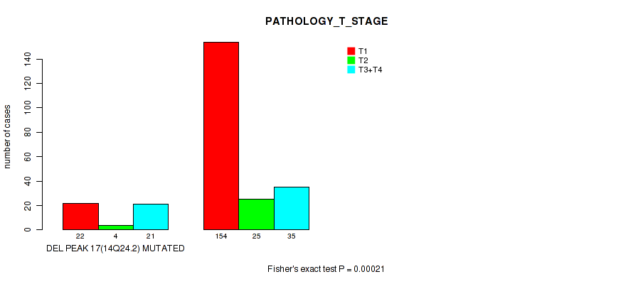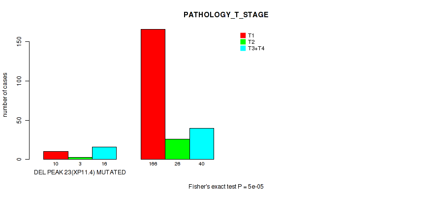 Figure S117. Get High-res Image Gene #30: 'del_xp11.4' versus Clinical Feature #4: 'PATHOLOGY_T_STAGE'