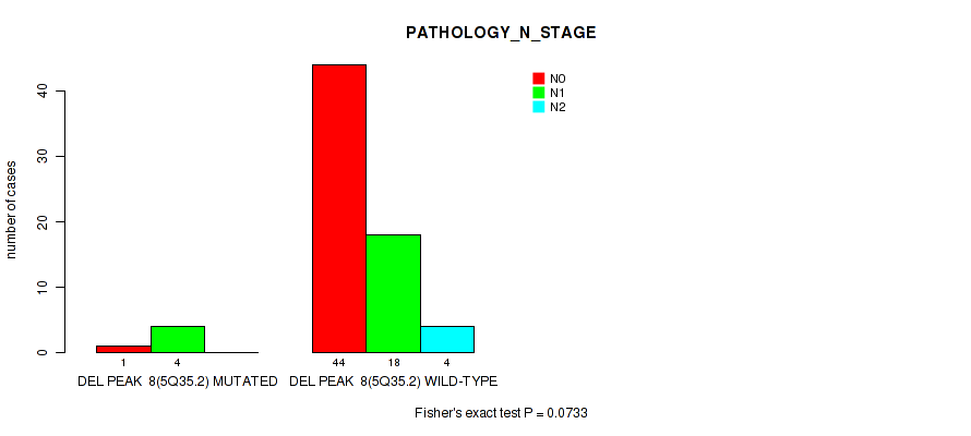 del_5q35.2 cnv correlated to 'Time to Death', 'YEARS_TO_BIRTH', 'NEOPLASM_DISEASESTAGE', 'PATHOLOGY_T_STAGE', 'PATHOLOGY_N_STAGE', and 'GENDER'.