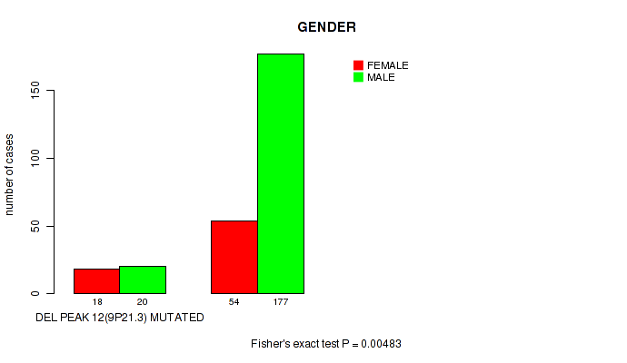 | del 9p21 3 | 38 (14%) | 231 |
