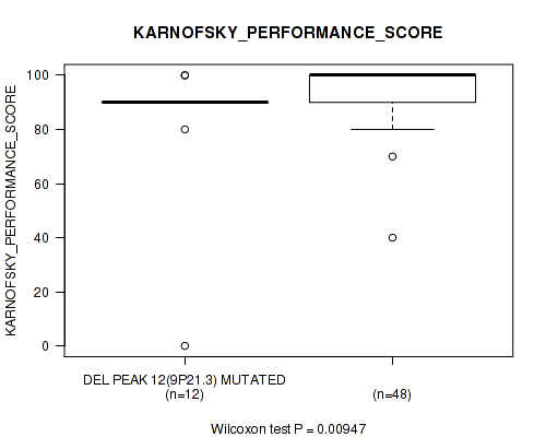 del_9p21.3 cnv correlated to 'Time to Death', 'NEOPLASM_DISEASESTAGE', 'PATHOLOGY_T_STAGE', 'PATHOLOGY_N_STAGE', 'PATHOLOGY_M_STAGE', 'GENDER', and 'KARNOFSKY_PERFORMANCE_SCORE'.