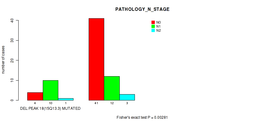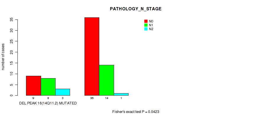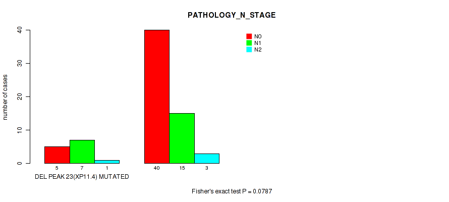 Figure S118. Get High-res Image Gene #30: 'del_xp11.4' versus Clinical Feature #5: 'PATHOLOGY_N_STAGE'