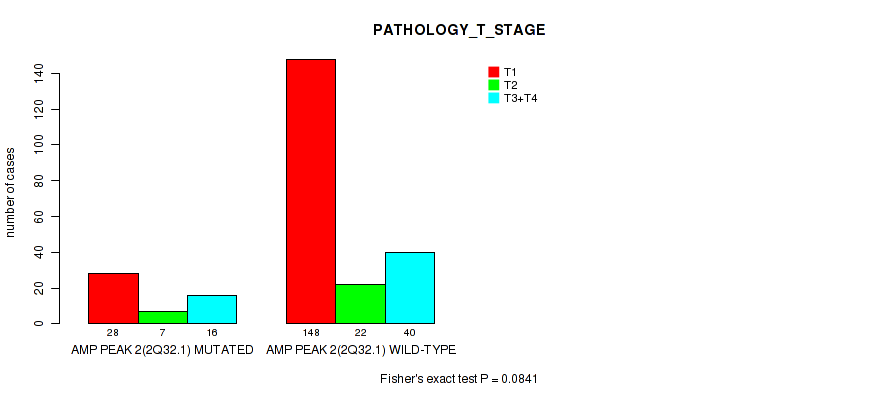 amp_2q32.1 cnv correlated to 'NEOPLASM_DISEASESTAGE', 'PATHOLOGY_T_STAGE', and 'PATHOLOGY_M_STAGE'.