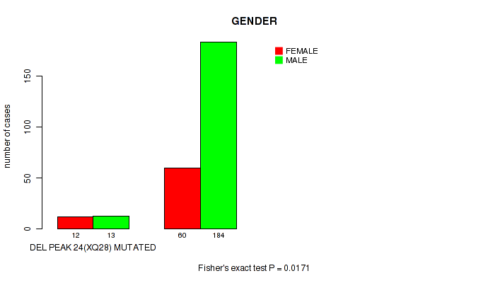 Figure S126. Get High-res Image Gene #31: 'del_xq28' versus Clinical Feature #7: 'GENDER'
