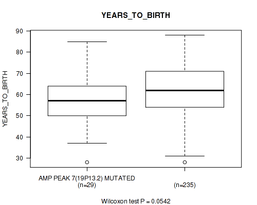 amp_19p13.2 cnv correlated to 'YEARS_TO_BIRTH' and 'PATHOLOGY_T_STAGE'.
