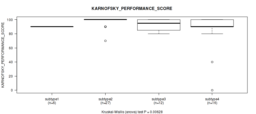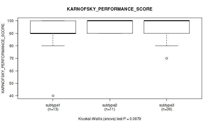 | KARNOFSKY PERFORMANCE SCORE | Kruskal-Wallis (anova) |