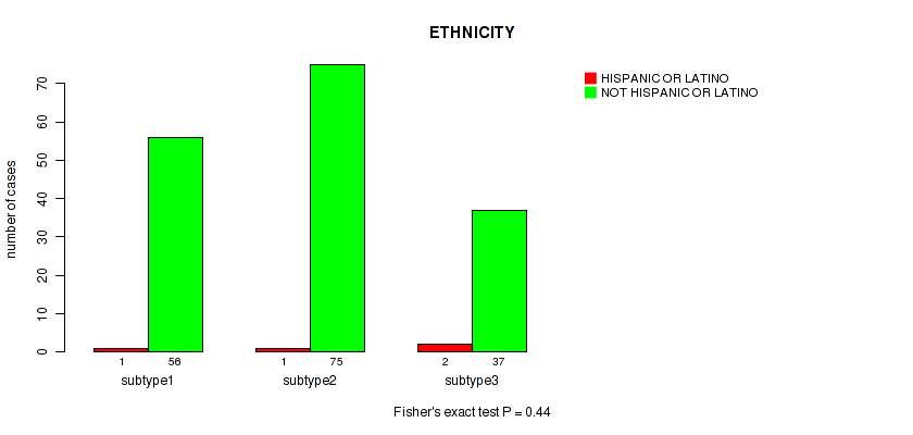 Figure S120. Get High-res Image Clustering Approach #10: 'MIRseq Mature cHierClus subtypes' versus Clinical Feature #12: 'ETHNICITY'