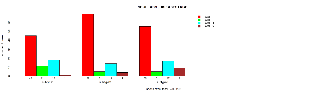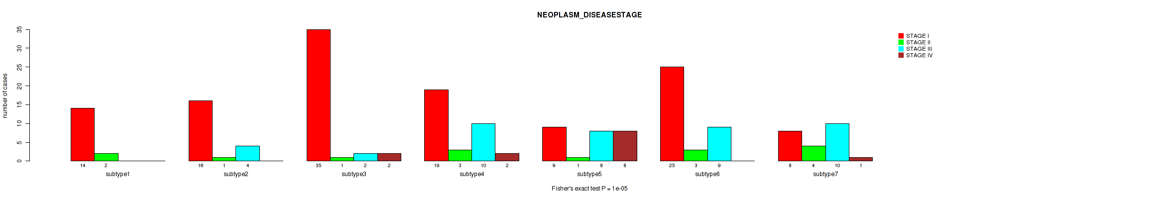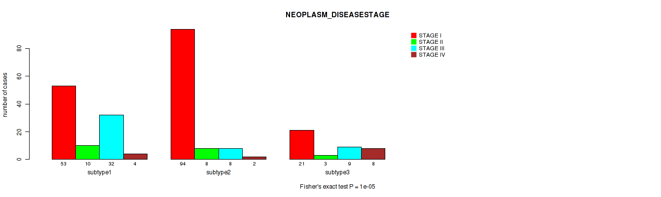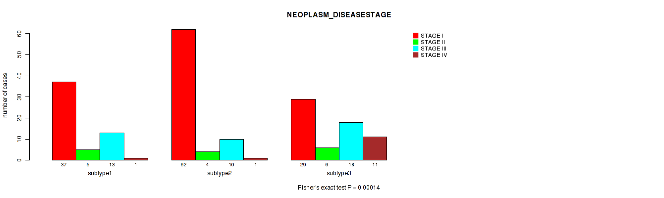 | NEOPLASM DISEASESTAGE | Fisher's exact test |