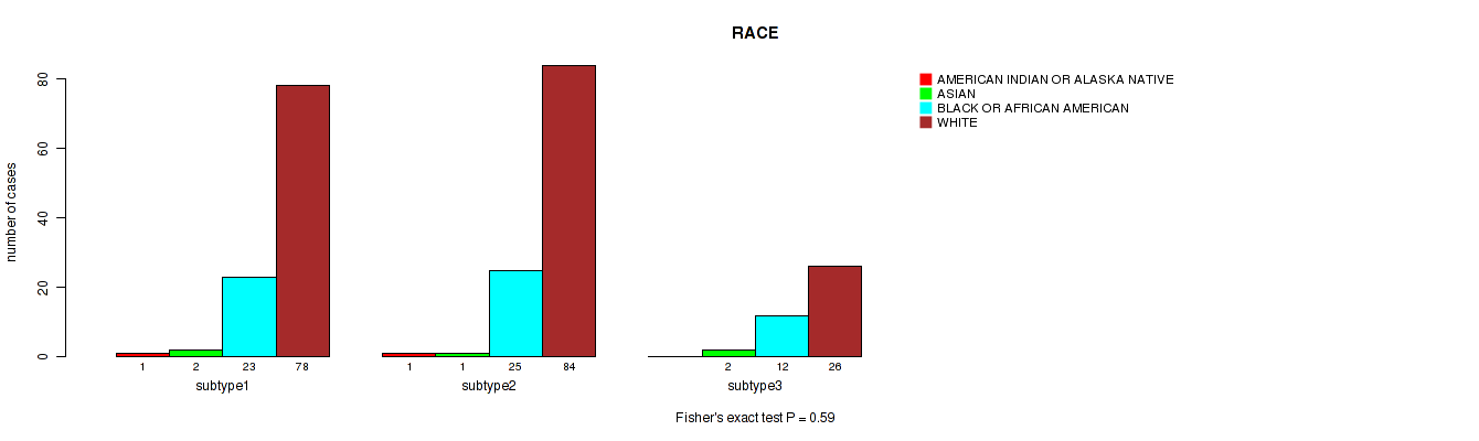 Figure S119. Get High-res Image Clustering Approach #10: 'MIRseq Mature cHierClus subtypes' versus Clinical Feature #11: 'RACE'