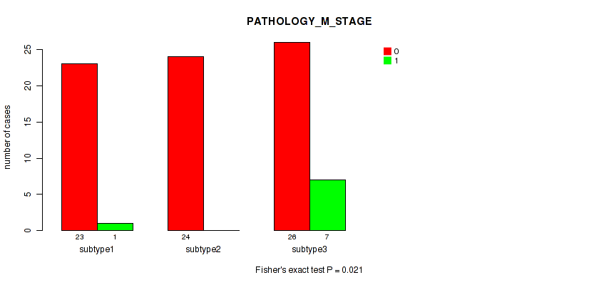 | PATHOLOGY M STAGE | Fisher's exact test |