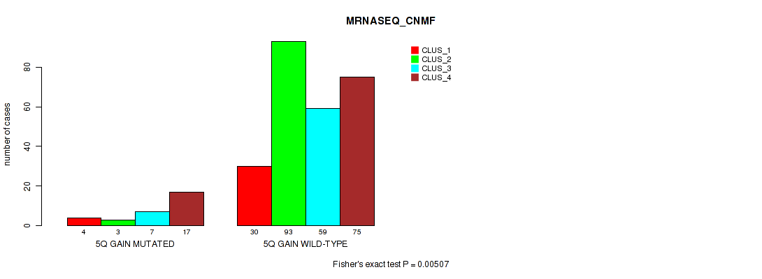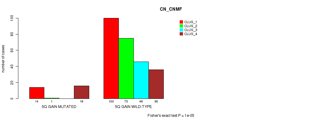 5q gain cnv correlated to 'CN_CNMF', 'METHLYATION_CNMF', 'MRNASEQ_CNMF', and 'MRNASEQ_CHIERARCHICAL'.