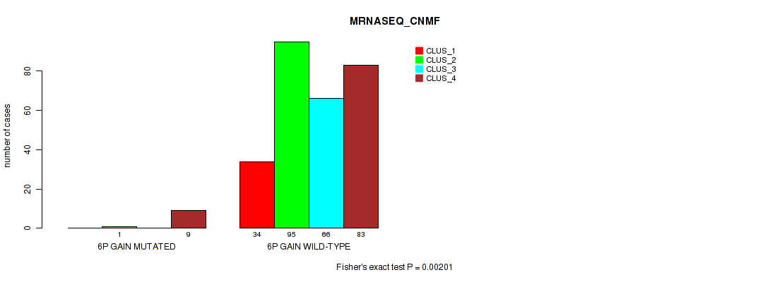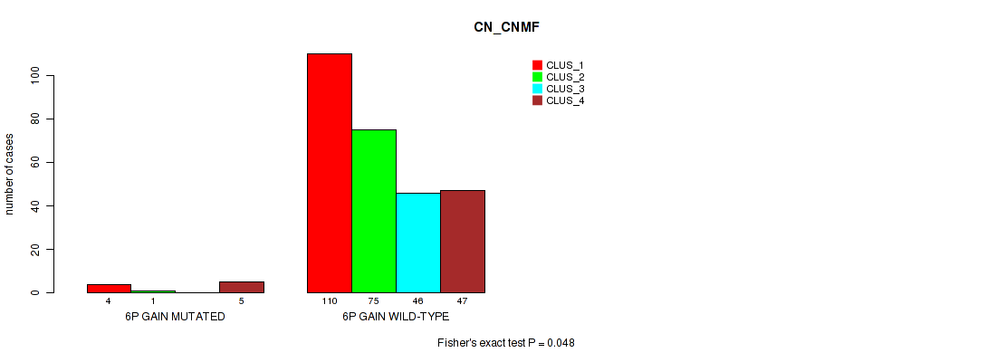 6p gain cnv correlated to 'CN_CNMF', 'METHLYATION_CNMF', and 'MRNASEQ_CNMF'.