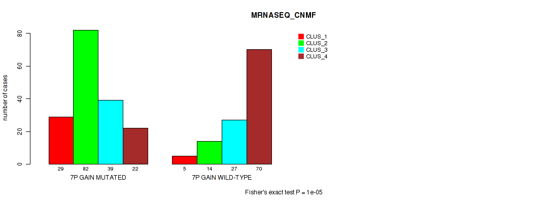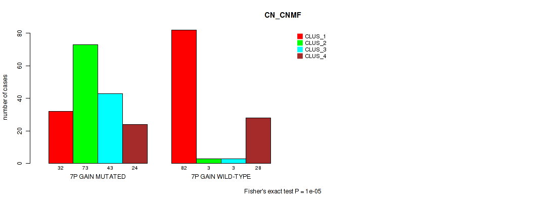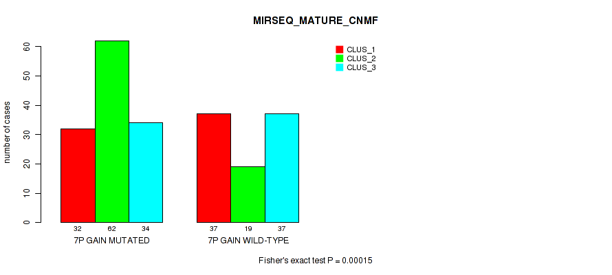7p gain cnv correlated to 'CN_CNMF', 'METHLYATION_CNMF', 'RPPA_CNMF', 'RPPA_CHIERARCHICAL', 'MRNASEQ_CNMF', 'MRNASEQ_CHIERARCHICAL', 'MIRSEQ_CNMF', 'MIRSEQ_CHIERARCHICAL', 'MIRSEQ_MATURE_CNMF', and 'MIRSEQ_MATURE_CHIERARCHICAL'.