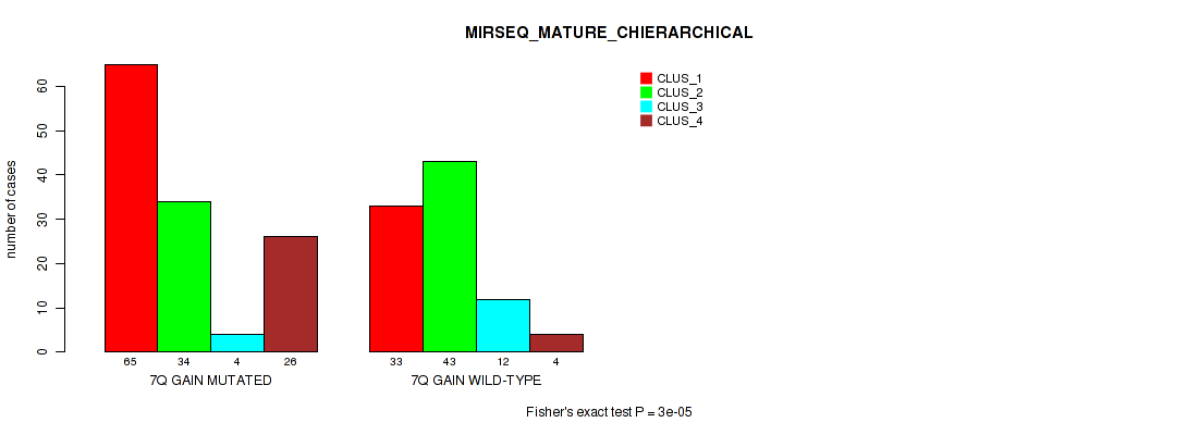 7q gain cnv correlated to 'CN_CNMF', 'METHLYATION_CNMF', 'RPPA_CNMF', 'RPPA_CHIERARCHICAL', 'MRNASEQ_CNMF', 'MRNASEQ_CHIERARCHICAL', 'MIRSEQ_CHIERARCHICAL', 'MIRSEQ_MATURE_CNMF', and 'MIRSEQ_MATURE_CHIERARCHICAL'.
