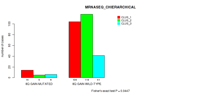 8q gain cnv correlated to 'METHLYATION_CNMF', 'MRNASEQ_CNMF', 'MRNASEQ_CHIERARCHICAL', and 'MIRSEQ_MATURE_CNMF'.