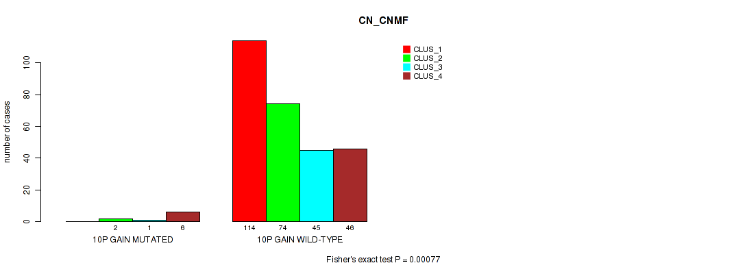 10p gain cnv correlated to 'CN_CNMF' and 'METHLYATION_CNMF'.