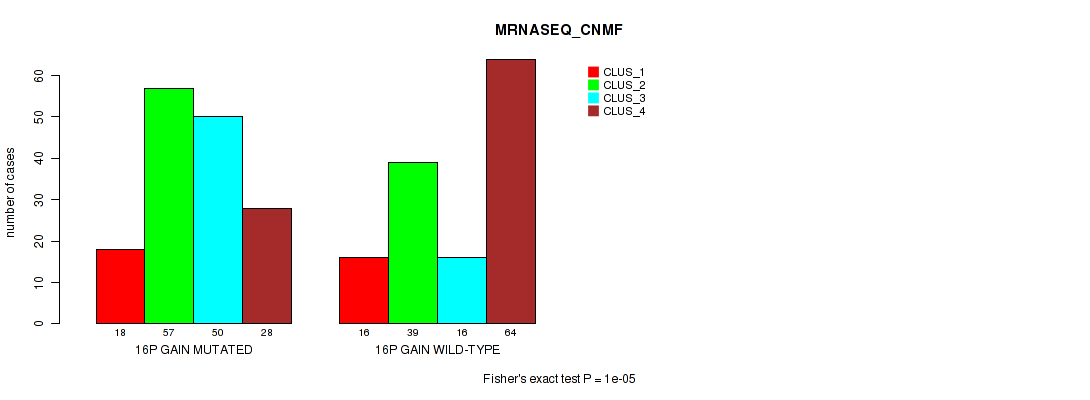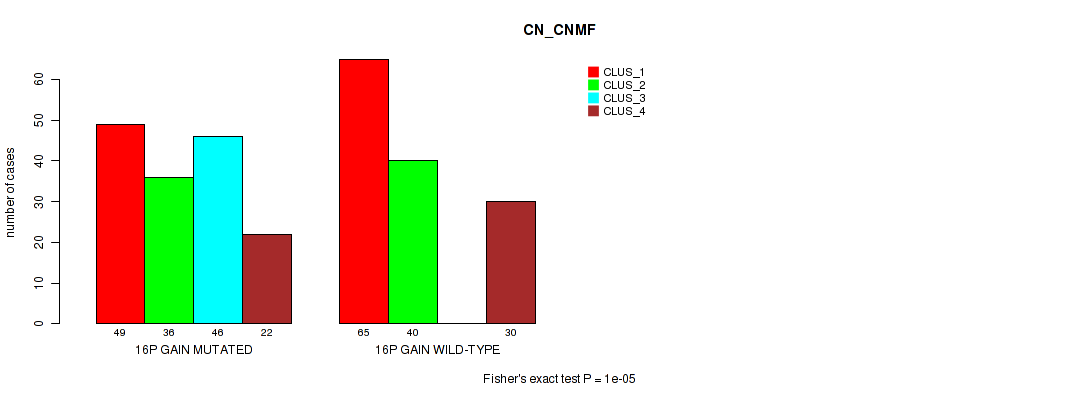 16p gain cnv correlated to 'CN_CNMF', 'METHLYATION_CNMF', 'RPPA_CHIERARCHICAL', 'MRNASEQ_CNMF', 'MRNASEQ_CHIERARCHICAL', 'MIRSEQ_CNMF', 'MIRSEQ_CHIERARCHICAL', 'MIRSEQ_MATURE_CNMF', and 'MIRSEQ_MATURE_CHIERARCHICAL'.
