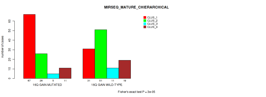 16q gain cnv correlated to 'CN_CNMF', 'METHLYATION_CNMF', 'RPPA_CHIERARCHICAL', 'MRNASEQ_CNMF', 'MRNASEQ_CHIERARCHICAL', 'MIRSEQ_CNMF', 'MIRSEQ_CHIERARCHICAL', 'MIRSEQ_MATURE_CNMF', and 'MIRSEQ_MATURE_CHIERARCHICAL'.